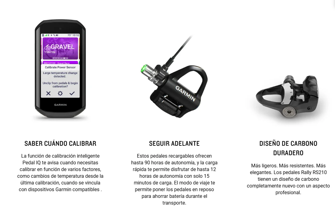 Empareje los pedales con medidor de potencia Rally RS210 con las computadoras de ciclismo Edge® compatibles y la aplicación Garmin Connect ™ 2 para facilitar la carga de datos y las actualizaciones de software.